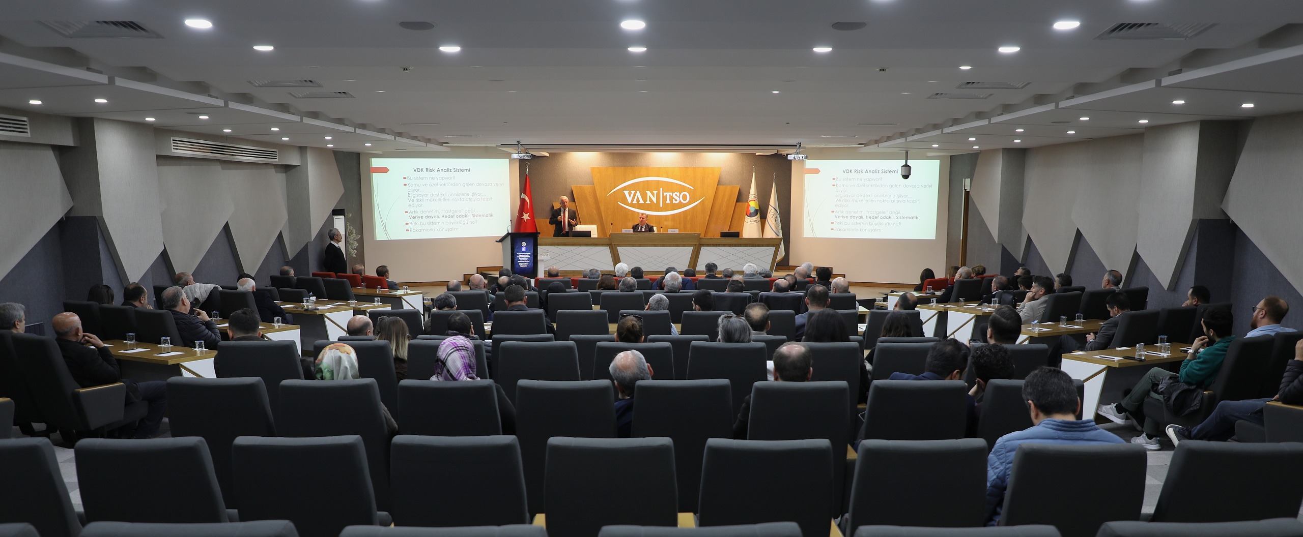 Van Ticaret ve Sanayi Odası ile ile Van Serbest Muhasebeci Mali Müşavirler Odası iş birliğinde; ‘Vergi İdaresince Başlatılan Gözetim ve Analiz Programı Kapsamında Vergi Mükelleflerini Neler Bekliyor? Nelere Dikkat Etmeliler? Konulu Bilgilendirme Toplantısı’ düzenlendi.